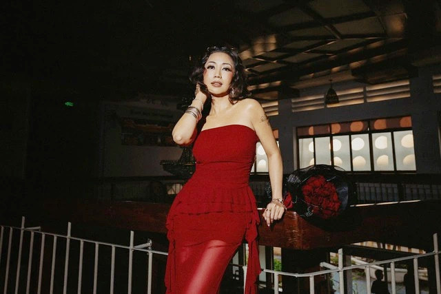 Hôm đó, bà Trần Lệ Hoa mặc một chiếc váy đỏ với khăn choàng đỏ và deo dây chuyền ngọc, trông thanh lịch như mọi khi. Tuy nhiên, dù đã trang điểm kỹ nhưng làn da của nữ tỷ phú vẫn rất nhợt nhạt.