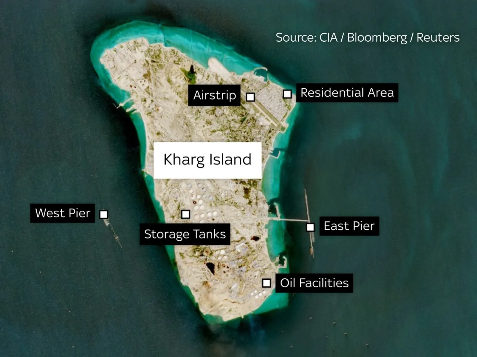 Tổng thống Mỹ Donald Trump đã nhiều lần đe dọa ném bom hoặc chiếm giữ hòn đảo này. Vào ngày 30/3, ông Trump đã tuyên bố trong một bài đăng trên mạng xã hội rằng Mỹ có thể sẽ cho phá hủy "các nhà máy phát điện, các giếng dầu và đảo Kharg".